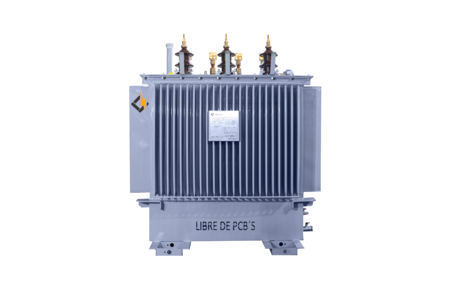 Transformador Trifásico de Distribución Llenado Integral. Trifilar con conexión DyN11. Triángulo estrella, con neutro accesible. Conmutador de cinco puntos, accionable desde el exterior estando el transformador sin tensión. De cuba prismática, con paneles aletados para la disipación de temperatura, refrigeración ONAN. Fabricados bajo Norma IRAM 2250, IRAM 2269 incluye normalizados.