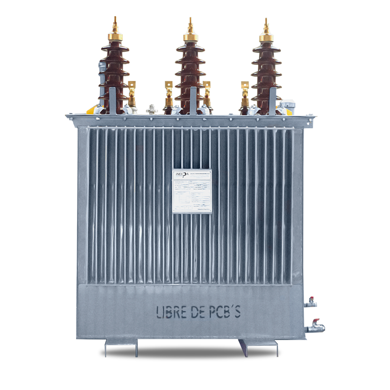Transformador Trifásico de Distribución Llenado Integral. Trifilar con conexión DyN11. Triángulo estrella, con neutro accesible. Conmutador de cinco puntos, accionable desde el exterior estando el transformador sin tensión. De cuba prismática, con paneles aletados para la disipación de temperatura, refrigeración ONAN. Fabricados bajo Norma IRAM 2250, IRAM 2269 incluye normalizados.