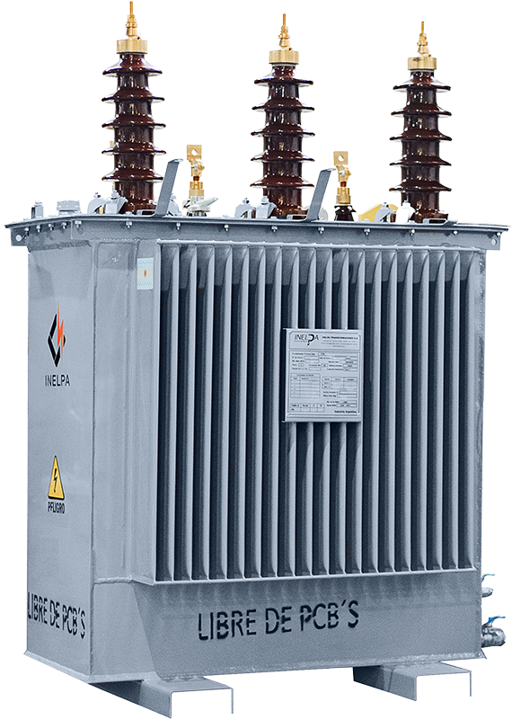Transformador Trifásico de Distribución Llenado Integral. Trifilar con conexión DyN11. Triángulo estrella, con neutro accesible. Conmutador de cinco puntos, accionable desde el exterior estando el transformador sin tensión. De cuba prismática, con paneles aletados para la disipación de temperatura, refrigeración ONAN. Fabricados bajo Norma IRAM 2250, IRAM 2269 incluye normalizados.