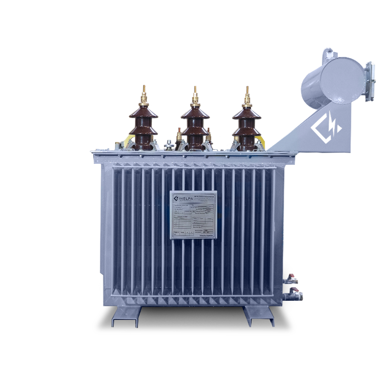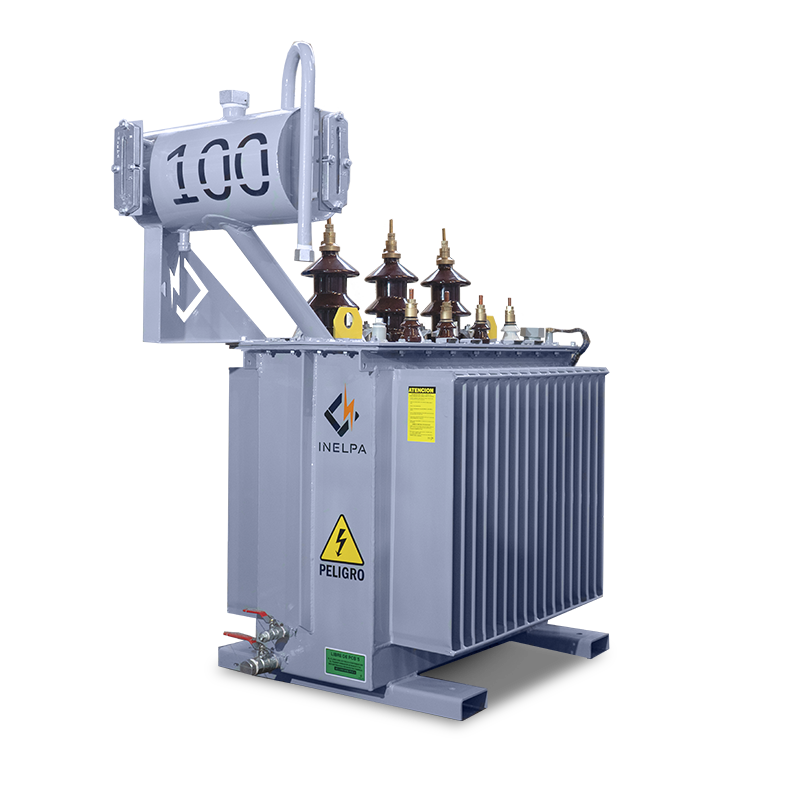 Transformador Trifásico de Distribución con Tanque de Expansión. Trifilar con conexión DyN11. Triángulo estrella, con neutro accesible. Conmutador de cinco puntos, accionable desde el exterior estando el transformador sin tensión. De cuba prismática, con paneles aletados para la disipación de temperatura, refrigeración ONAN. Fabricados bajo Norma IRAM 2250, IRAM 2269 incluye normalizados.