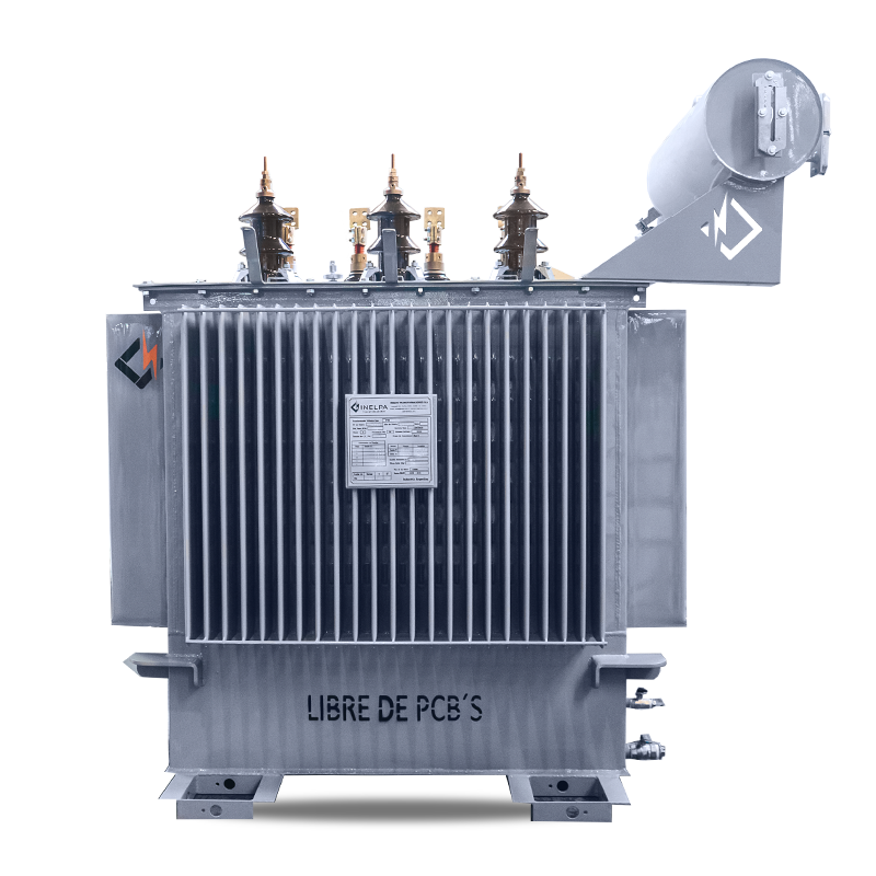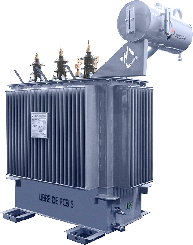 Transformador Trifásico de Distribución con Tanque de Expansión. Trifilar con conexión DyN11. Triángulo estrella, con neutro accesible. Conmutador de cinco puntos, accionable desde el exterior estando el transformador sin tensión. De cuba prismática, con paneles aletados para la disipación de temperatura, refrigeración ONAN. Fabricados bajo Norma IRAM 2250, IRAM 2269 incluye normalizados.