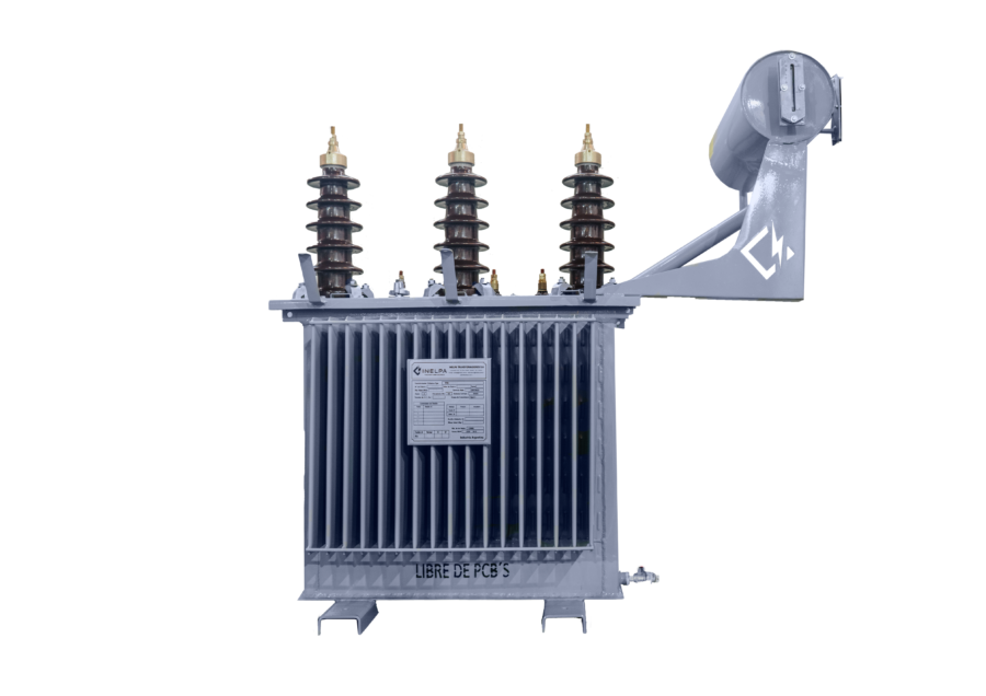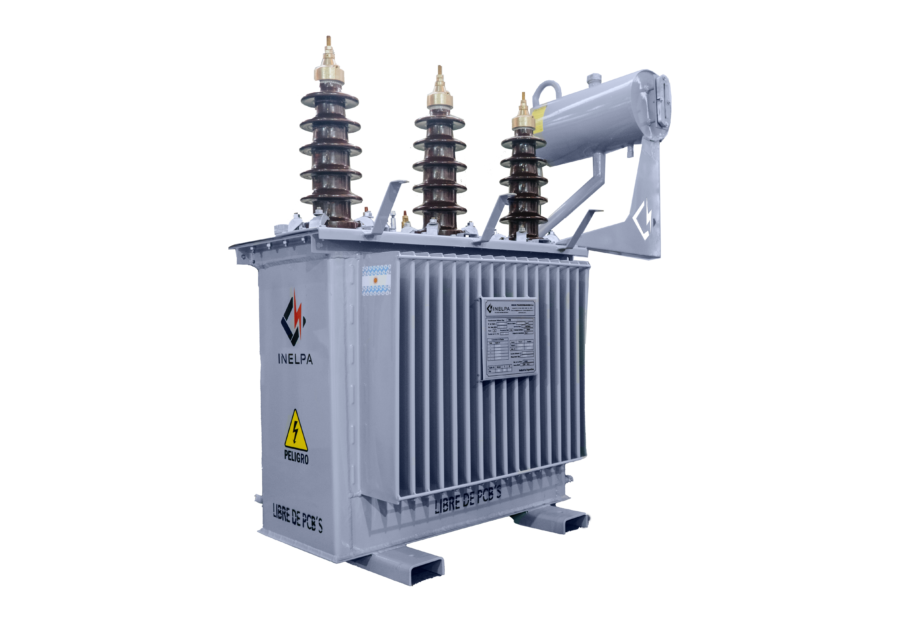 Transformador Trifásico de Distribución con Tanque de Expansión. Trifilar con conexión DyN11. Triángulo estrella, con neutro accesible. Conmutador de cinco puntos, accionable desde el exterior estando el transformador sin tensión. De cuba prismática, con paneles aletados para la disipación de temperatura, refrigeración ONAN. Fabricados bajo Norma IRAM 2250, IRAM 2269 incluye normalizados.