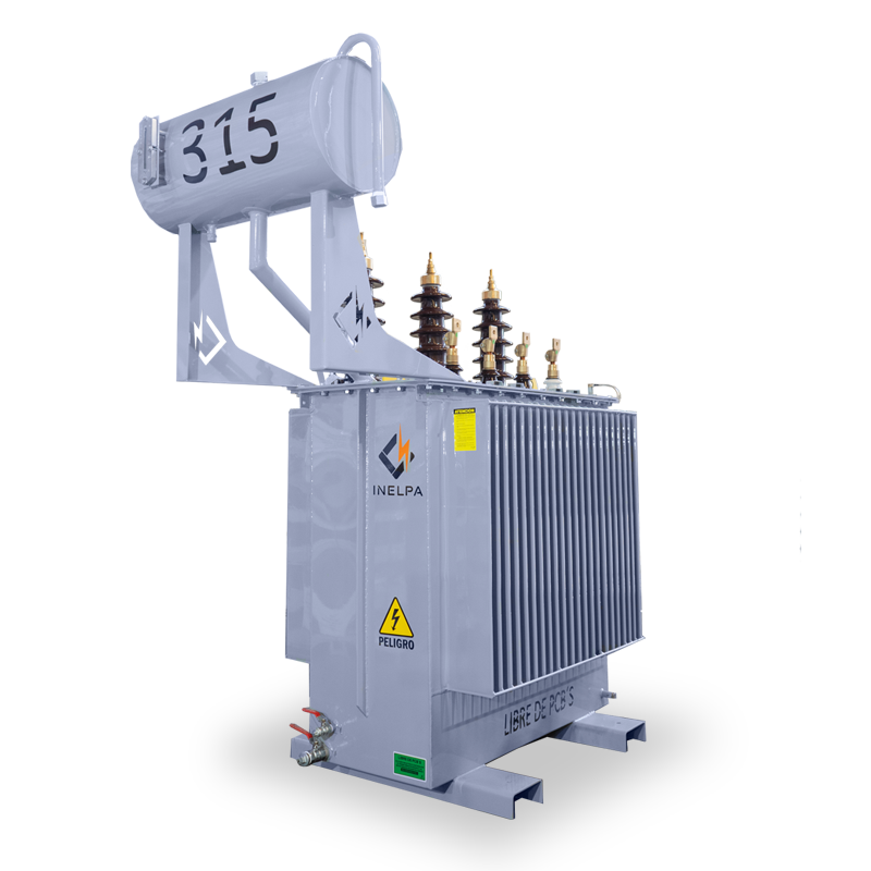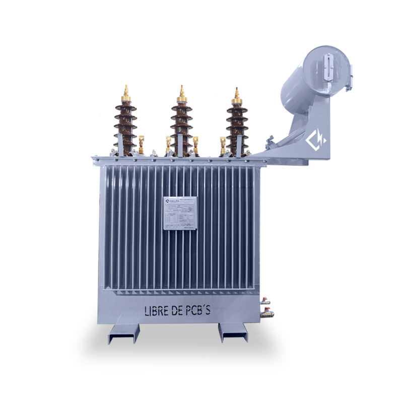 Transformador Trifásico de Distribución con Tanque de Expansión. Trifilar con conexión DyN11. Triángulo estrella, con neutro accesible. Conmutador de cinco puntos, accionable desde el exterior estando el transformador sin tensión. De cuba prismática, con paneles aletados para la disipación de temperatura, refrigeración ONAN. Fabricados bajo Norma IRAM 2250, IRAM 2269 incluye normalizados.