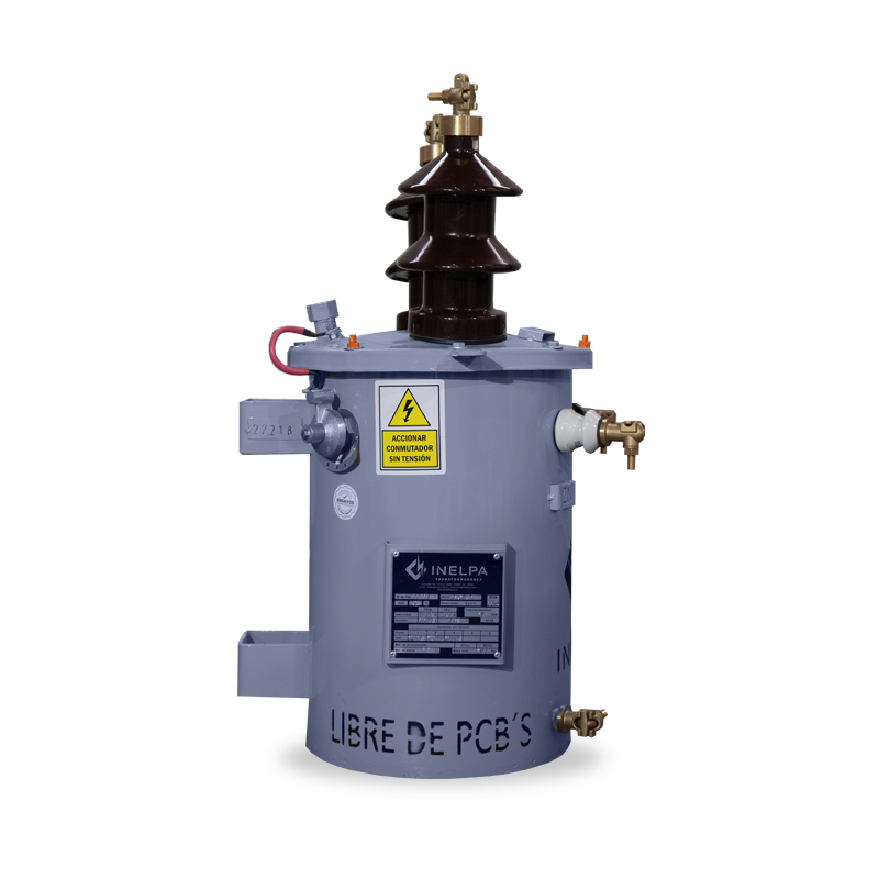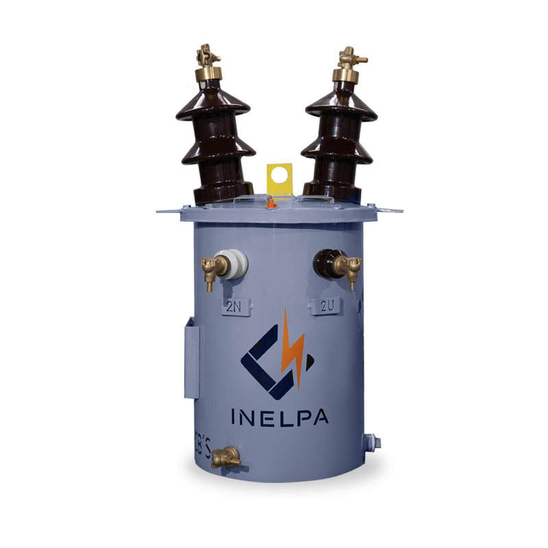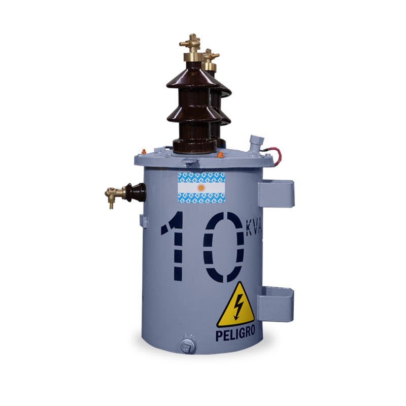 Transformador Bifásico Rural. Bifilar con conexión directa. Conmutador de tres puntos (con opción de cinco puntos), de fácil acceso, accionable desde el exterior estando el transformador sin tensión. De cuba cilíndrica, monoposte, con cáncamo de izaje en tapa, refrigeración ONAN. Fabricados bajo Norma IRAM 2269, incluye accesorios normalizados.
