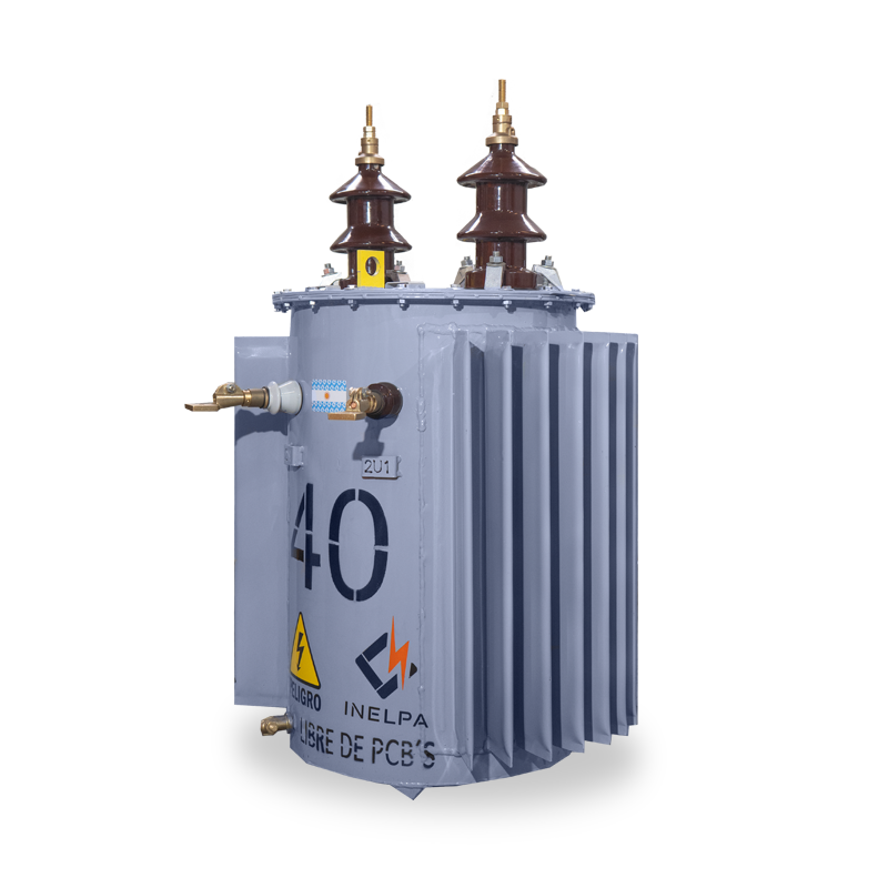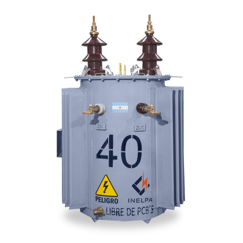 Transformador Bifásico Rural. Bifilar con conexión directa. Conmutador de tres puntos (con opción de cinco puntos), de fácil acceso, accionable desde el exterior estando el transformador sin tensión. De cuba cilíndrica, monoposte, con cáncamo de izaje en tapa, refrigeración ONAN. Fabricados bajo Norma IRAM 2269, incluye accesorios normalizados.